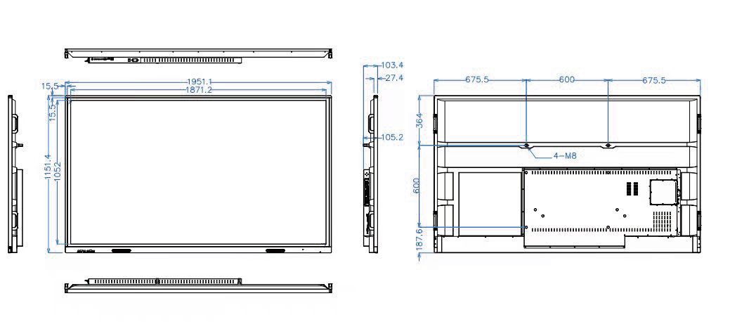 | 輸入輸出介面 | HDMI x3(1路前置,2路後置), USB3.0x3(1路前置),SDx1 ,音頻輸入 x1, VGA out x1, 音頻輸出 x1, 觸摸USBx2(前置*1,板載*1), RF x1, WIFI x1, 3.5mm AUX audio 音頻輸出 x 1, 麥克風輸入 x 1(4K默認內置OPS) |